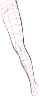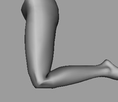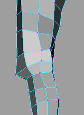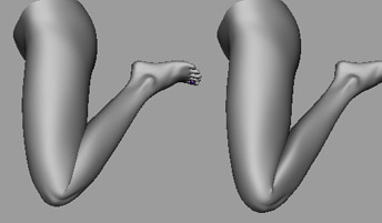 Next use Set Driven Key to hook these Blendshape sliders up to the Y-rotation of that knee. As the first slider reaches 1, the other stays at 0. As the second reaches 1 the first stays at 1, and if you have other targets, so on. The hip usually needs 2 targets forward, and the spine maybe about 10 (left/right, back/front, lower/upper spine). The neck needs a few, and the shoulder needs about 4. All in all you should be able to make do with about 20 - 30, which is still very light and doesn't take that long to do. If you want the knee to be even better than this you can either raise the resolution of the Wrapper - though there's a limit to how useful that can be, due to the 'fuzziness' of the influence area I mentioned earlier. You can also add Blendshapes straight to the high-res Skin, though I'd save that as a last resort - one such target makes the file much heavier than Wrapper targets. (Most of the other joints won't need this though.) Here's what the 90 and 130 degree rotations can look like with such fine-tuning: