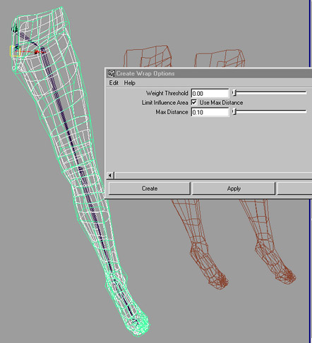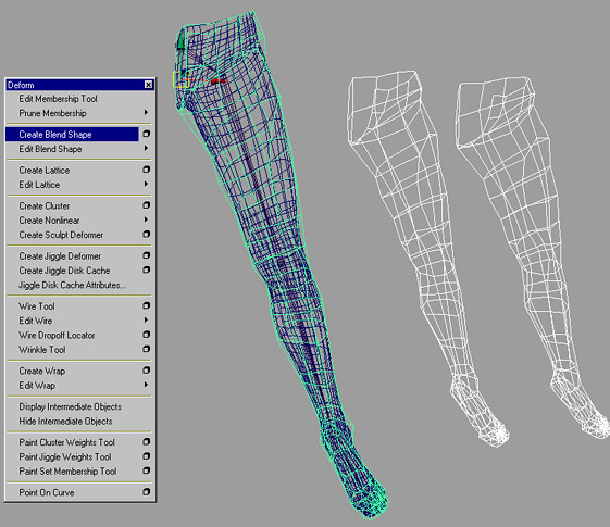 You'll want to add more than one target to each knee. Now do the next target, maybe at around 130 degrees. This one is trickier to get right - now the verts on the Wrapper geometry's thigh and calf are penetrating each other. And since Wrap deforming isn't based on a "one-on-one relationship between 2 verts" but more of a "whichever is closest will have the most effect", it gets harder to control their behavior as they clump together.