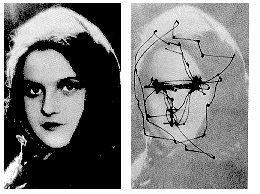 On the right, see a rough indication (in red) of how the eyes will probably move across the image.